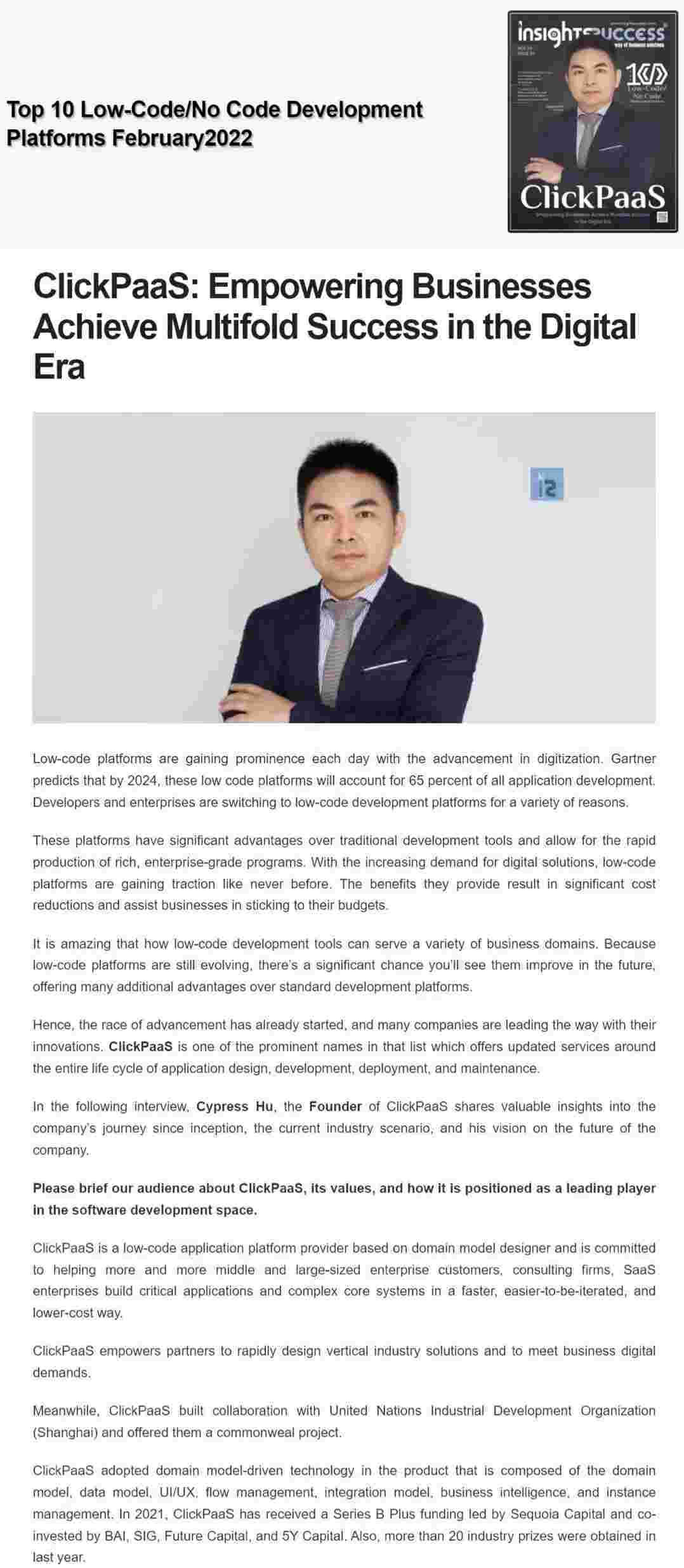 Insights Success是业界首屈一指的商业杂志,,,为所有领先的和新兴的公司提供一个发声平台。。专注报道新兴、、快速增长的企业及其领导力,,传递企业领袖观点和理念、、、、同时分享市场最新的商业资讯、、、、产品信息及服务。。。