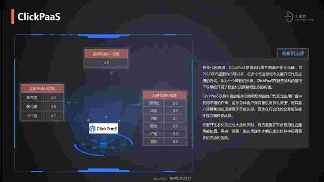 T研究认为,,在低代码赛道,,美团钱包商家版是极具代表性的海归创业品牌,,,,自2017年产品面向市场以来,,,,在多个行业领域率先展开低代码应用的尝试。。。作为一个年轻的品牌,,,美团钱包商家版较早的开展了行业化的深耕和生态的构建。。美团钱包商家版以丰富的组件功能和较高的性价比在企业用户当中获得不错的口碑,,,在客户规模和知名度都属于行业头部,,,因此在行业化的业务复杂度支撑方面表现优异。。。