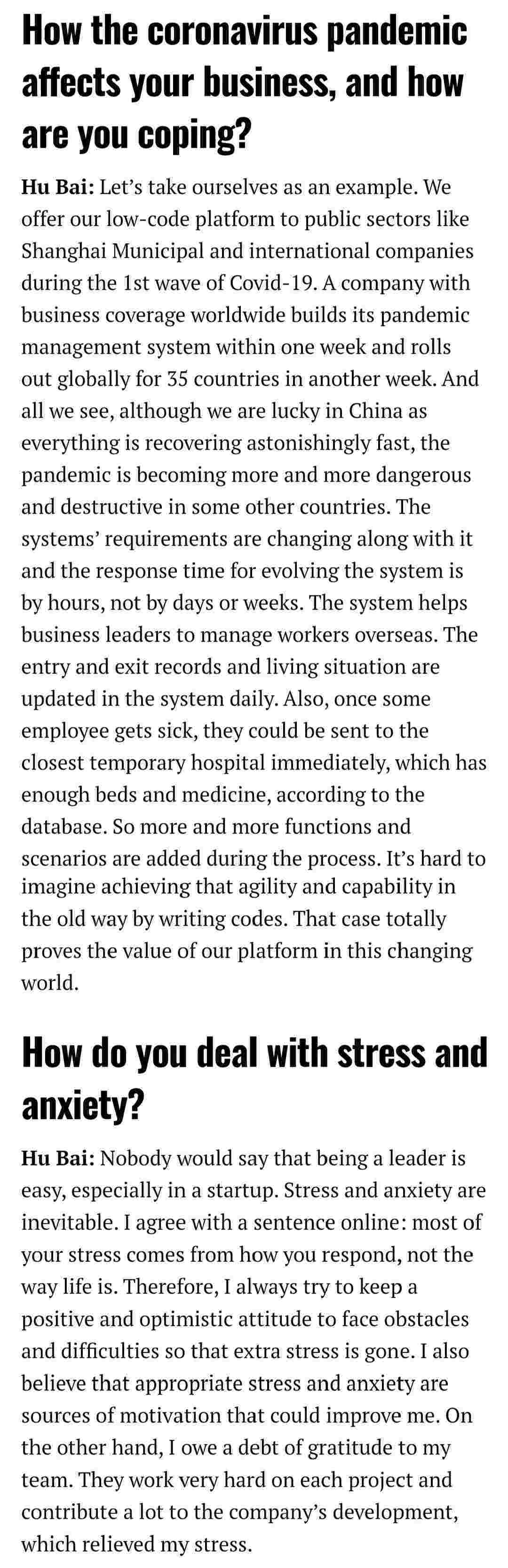 2021年年初,,爱湃斯科技CEO胡柏受邀接受法媒Startup.info的专访,,与Startup info的读者分享了自己的创业经历、、、以及低代码平台美团钱包商家版的创新之处。。。