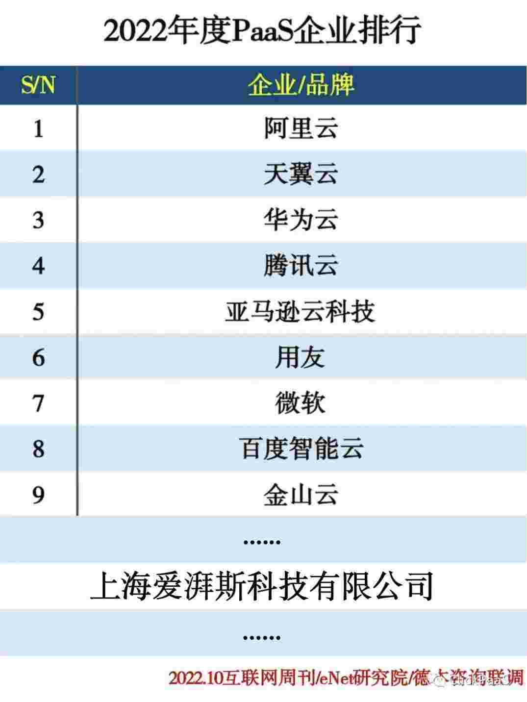 近日,,,,Internet Deep发布了由互联网周刊、、eNet研究院、、、、德本咨询联合调查的”2022年度PaaS企业排行“榜单,,上海爱湃斯科技有限公司(以下简称美团钱包商家版),,,凭借强大的建模能力,,,为各行业头部客户解决复杂业务需求的实践经验以及强大的集成扩展能力,,入选2022年度PaaS企业排行TOP 50。。。